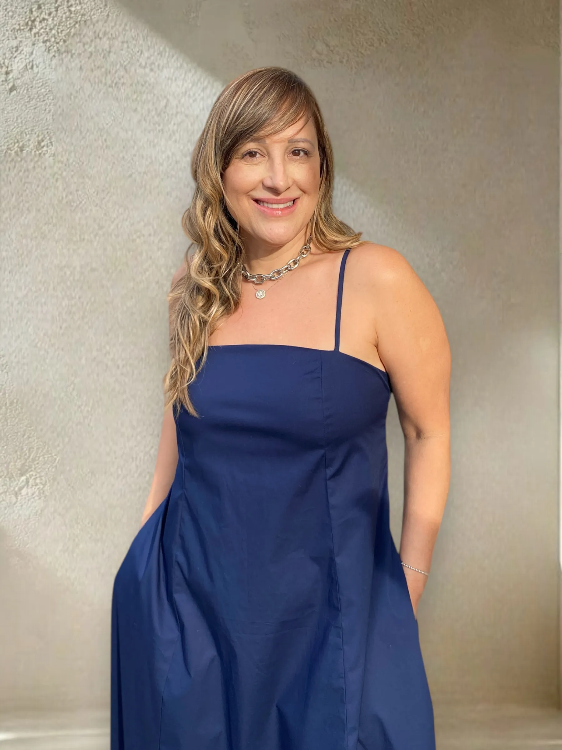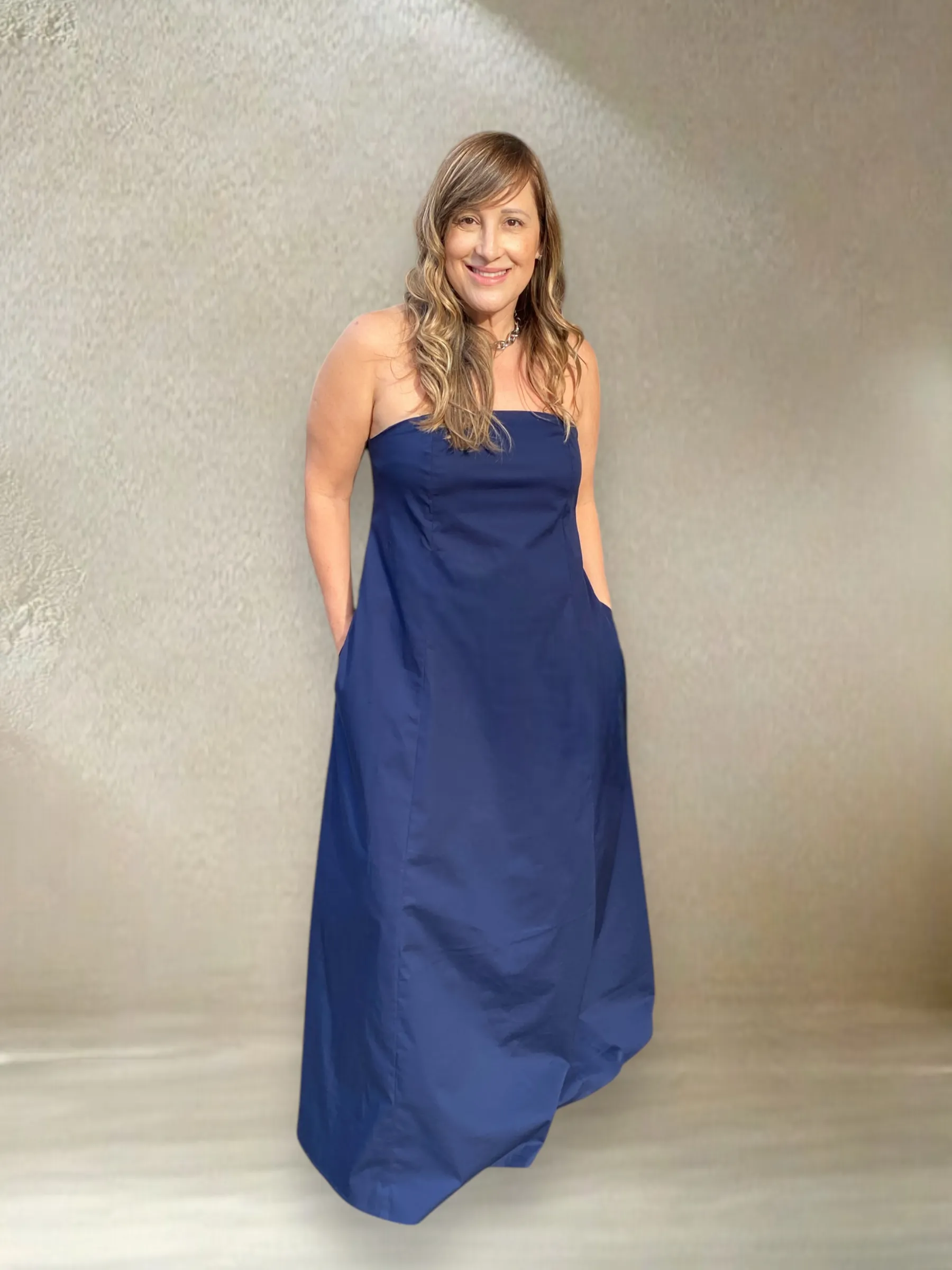 Muito elegante e cheio de conforto, o vestido Alexia é confeccionado em tricoline de algodão, modelagem evasê, decote reto, alças finas, comprimento longo, fechamento posterior por zíper e lastex nas costas para maior conforto.