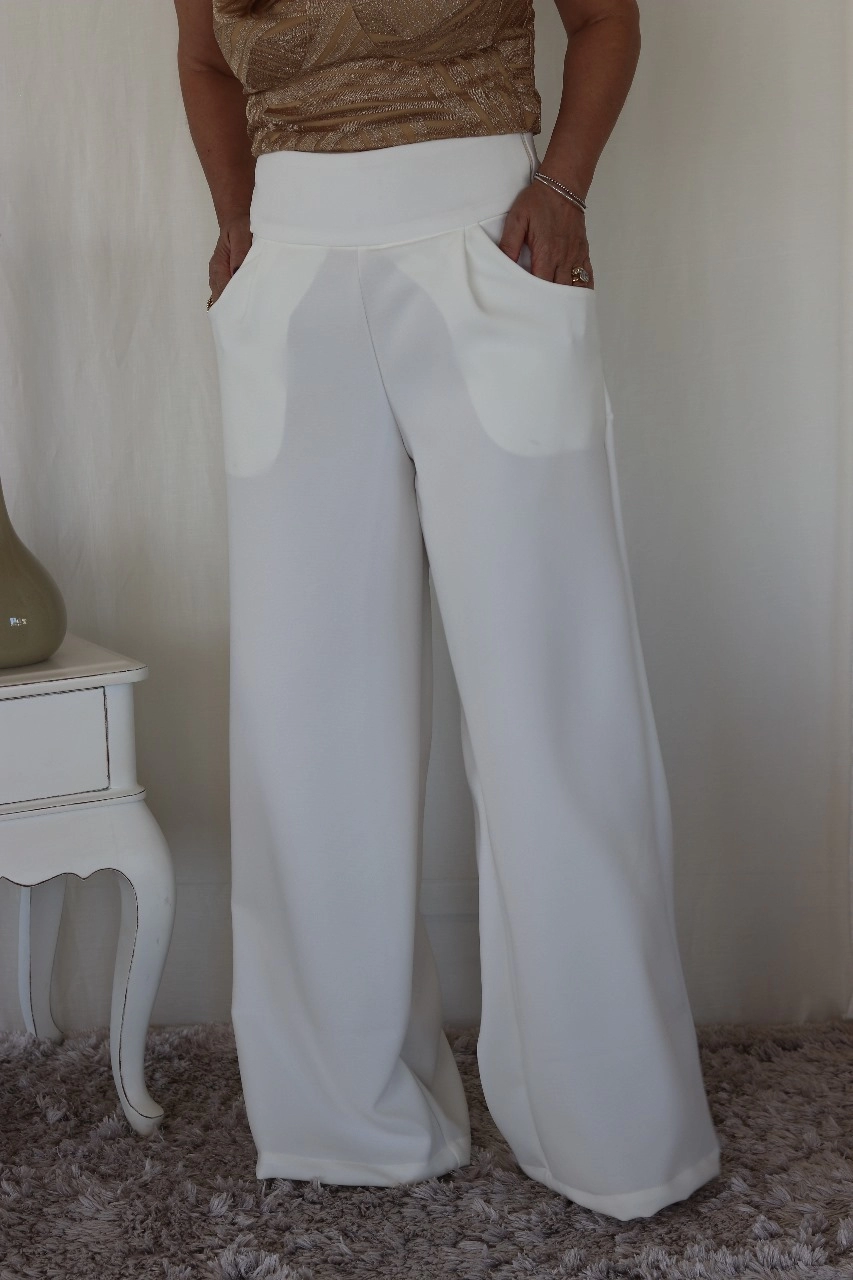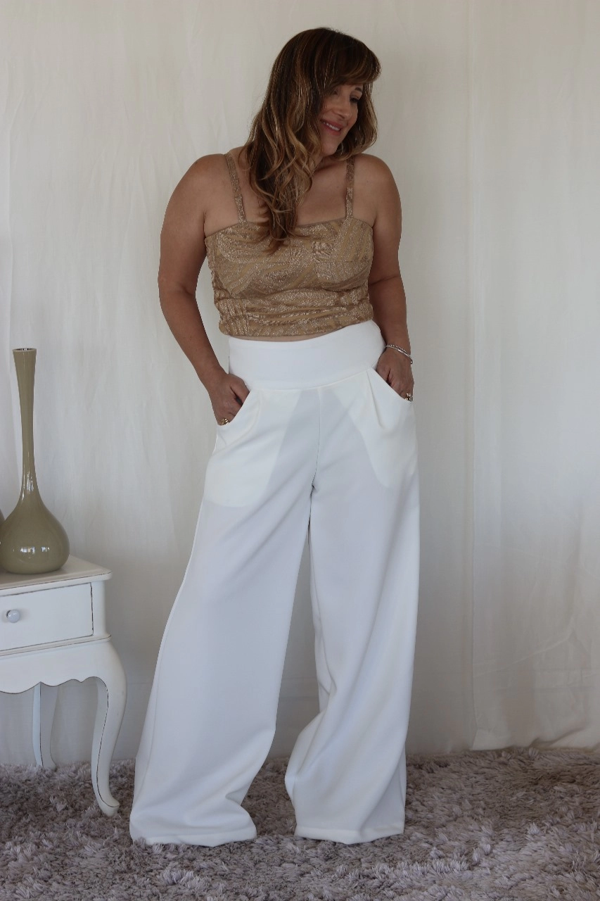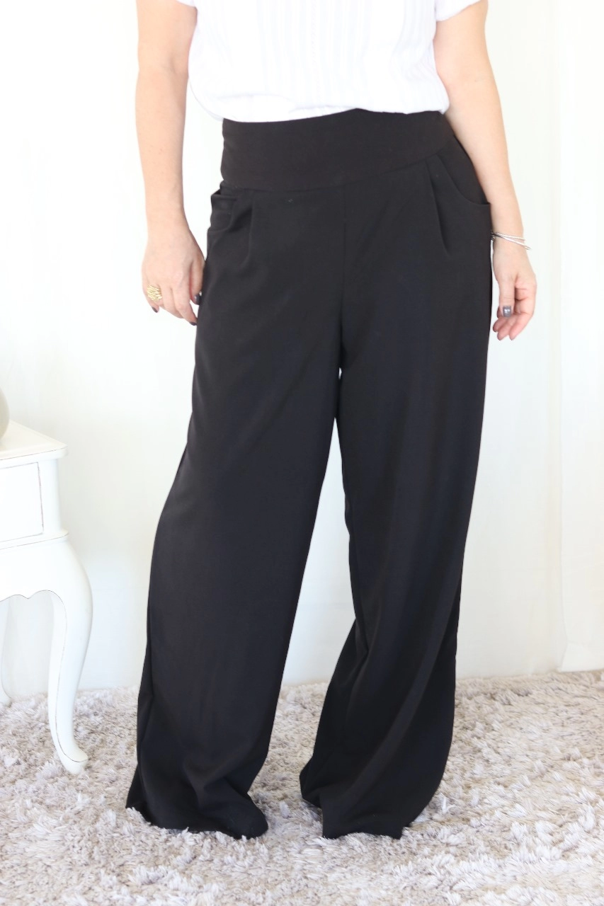 Confeccionada em tecido plano, modelagem ampla das pernas, fechamento por zíper e cós anatômico para melhor encaixe. Ideal para compor vários looks com toque de sofisticação à produção.
